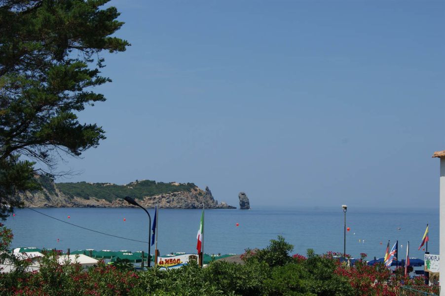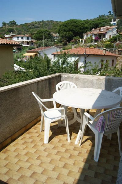 Attraverso una scala esterna si accede ad una prima terrazza con vista mare, attrezzata per mangiare all’aperto e dalla quale si accede all’appartamento: esso è costituito da zona giorno con angolo cottura e due posti letto, piccolo balcone, bagno con box doccia e camera doppia, anch’essa dotata di piccola terrazza con gradevoli affacci nel verde.